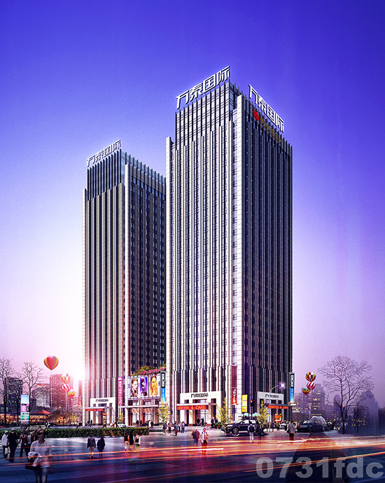 万泰国际项目位于湖南省长沙市望城区金星大道与桑梓路交叉口,总建筑面积约6.8万平方米,双塔楼设计,东塔25层,西塔27层,裙楼3层。建筑外观以现代风格为主导,点缀以简约的线条和明快的色调追求空间变化的连续性和形体变化的层次感。